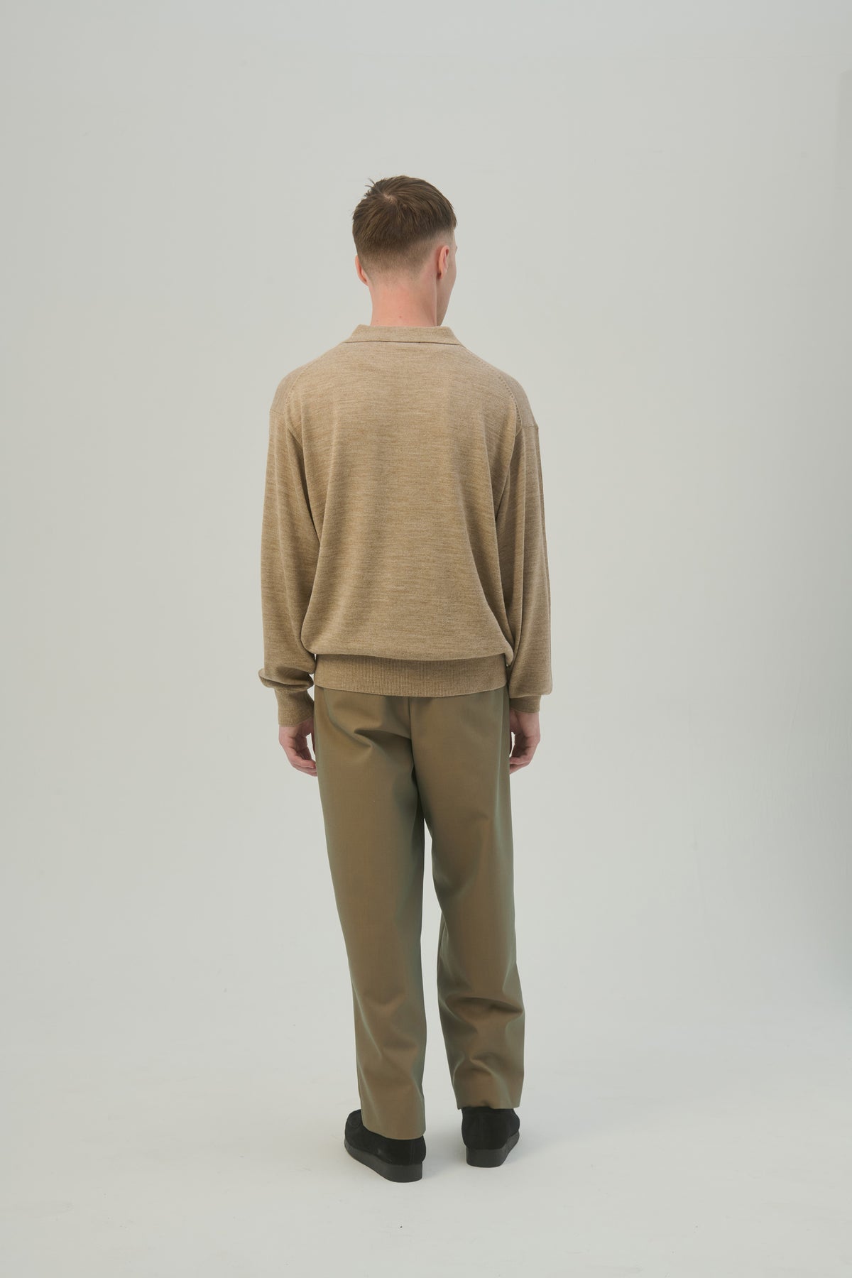 前立てをリブに切り替え、ボタンを排したスキッパータイプのポロシャツ。